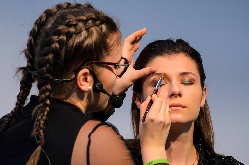 Să începem! Cea mai importantă procedură de care nu trebuie să uitați este, bineînțeles, pregătirea tenului care, în cadrul unui seminar este cu atât mai importantă cu cât modelul este filmat, iar imaginea redă cu fidelitate și în mărime mare toate procedurile realizate. Atât partea de curățare, tonifiere, hidratare, cât și aplicarea fondului de ten și fixarea lui au fost pași pe care am ales să îi fac în backstage și nu pe scenă.